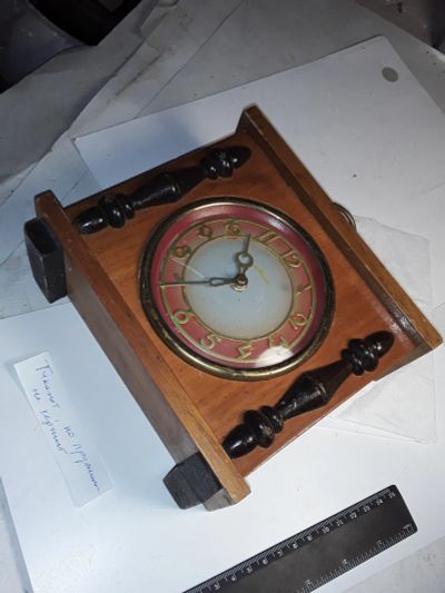 механические деревянные часы Маяк СССР . механизм исправен , но пружина не фиксируется